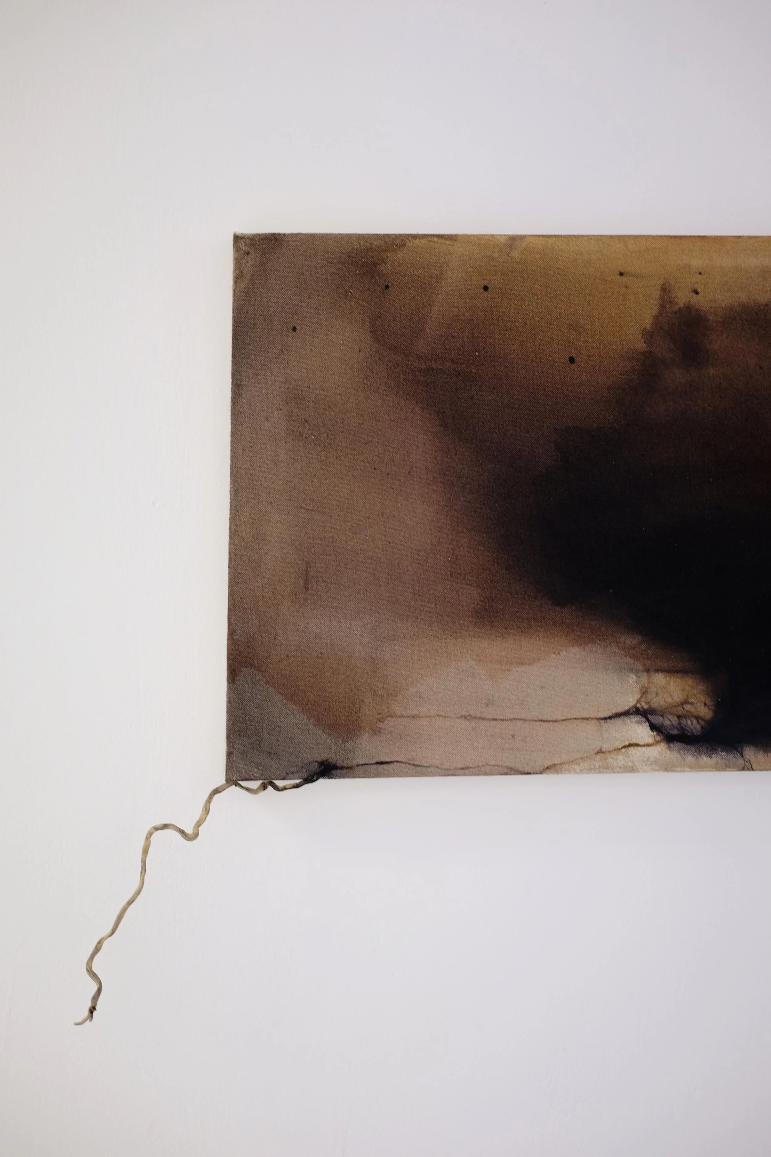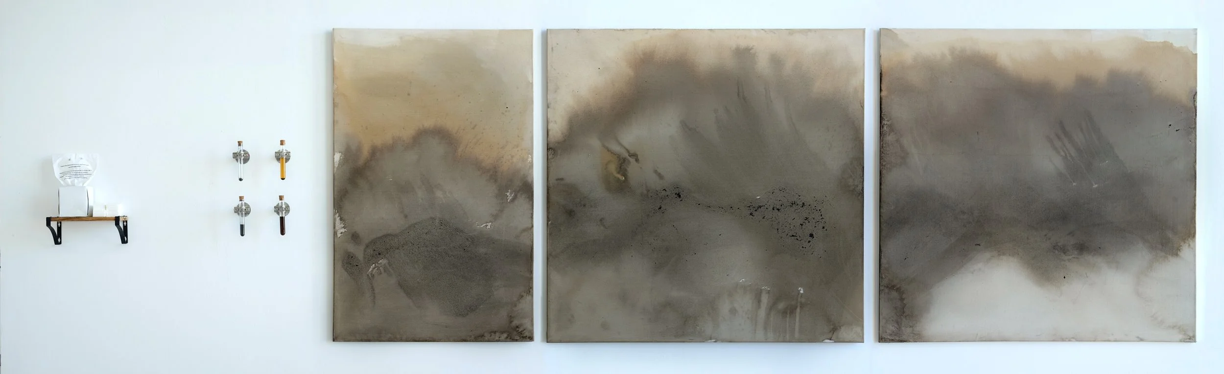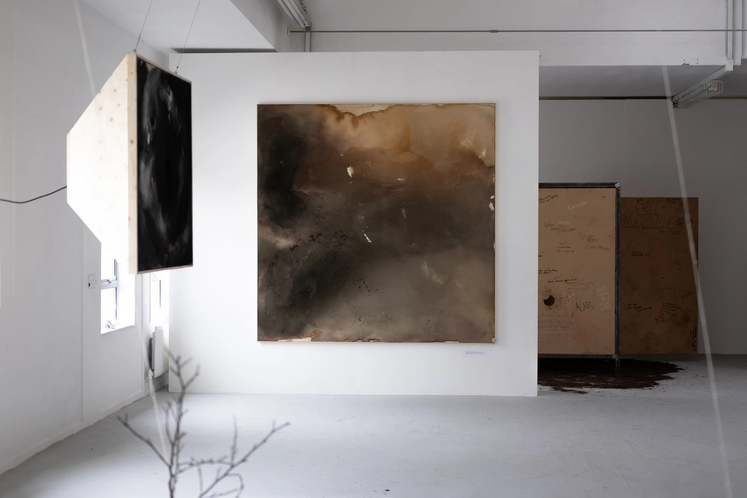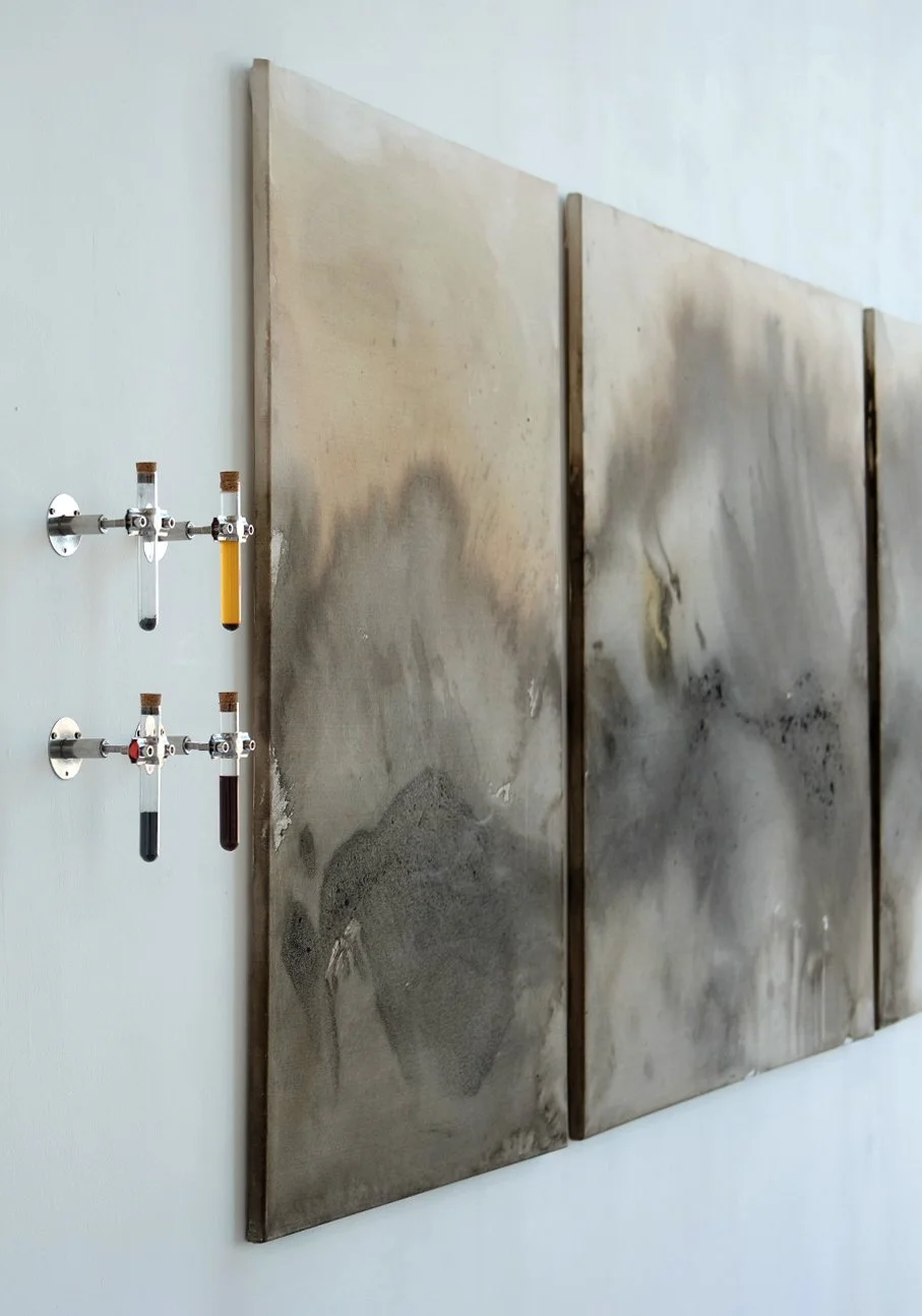 In my Masters research at Goldsmiths I have been exploring our relationship to breath, atmosphere and air pollution and how it entangles us with the places we inhabit. Through fieldwork in North East London, where I grew up, I have created foraged urban pigments from particulate matter and the urban trees which filter our air. Large-scale paintings of natural and toxic dyes depict the exchanges we have between the nonhuman, the toxic and the atmosphere. Asking us to sense the air, our breath, and to attune to what it contains. To think outside of our porous borders and what it means to be atmospherically reliant on a polluted world?